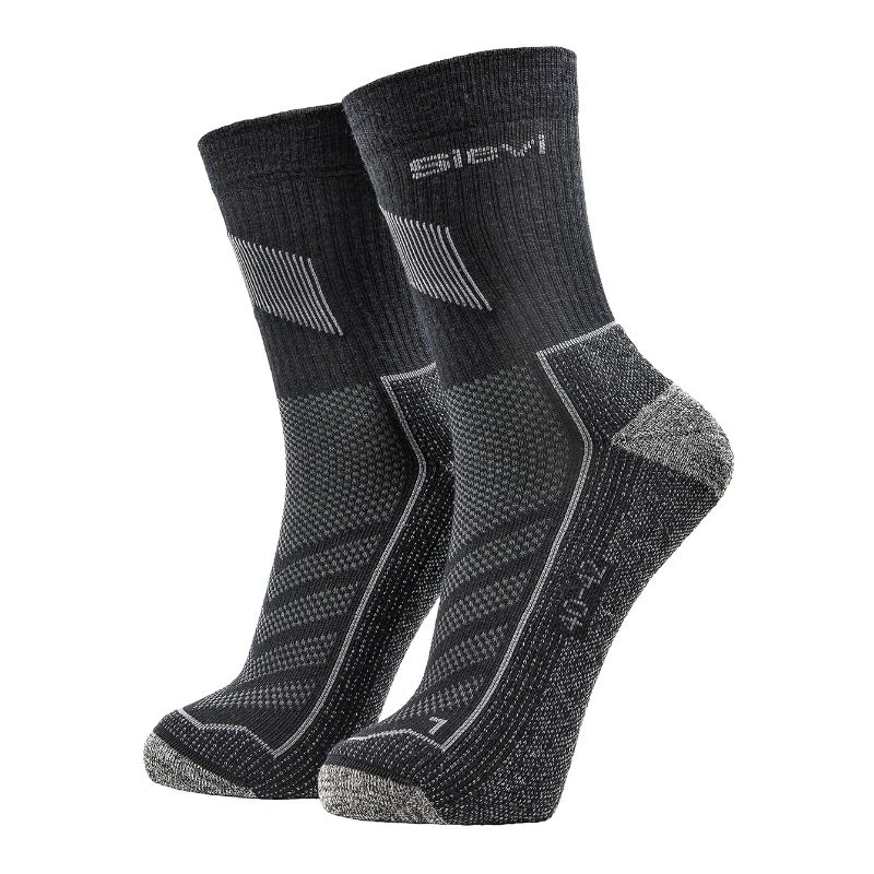 Kehitetty siirtämään kosteutta ja lämpöä jalkojen pinnalta. Tekninen Sievi All Season -sukka on kestävä, sopii ympärivuotiseen käyttöön ja suositellaan käytettäväksi puolikengissä, maihareissa ja esimerkiksi Gore-Tex®-jalkineissa. ESD-hyväksytty. Merinovilla on Mulesing-vapaa. Materiaaleina: 48 % Polyamidia, 34 % Merinovillaa, 14 % Polypropeenia, 2 % Elastaania ja 2 % Hiilikuitua.