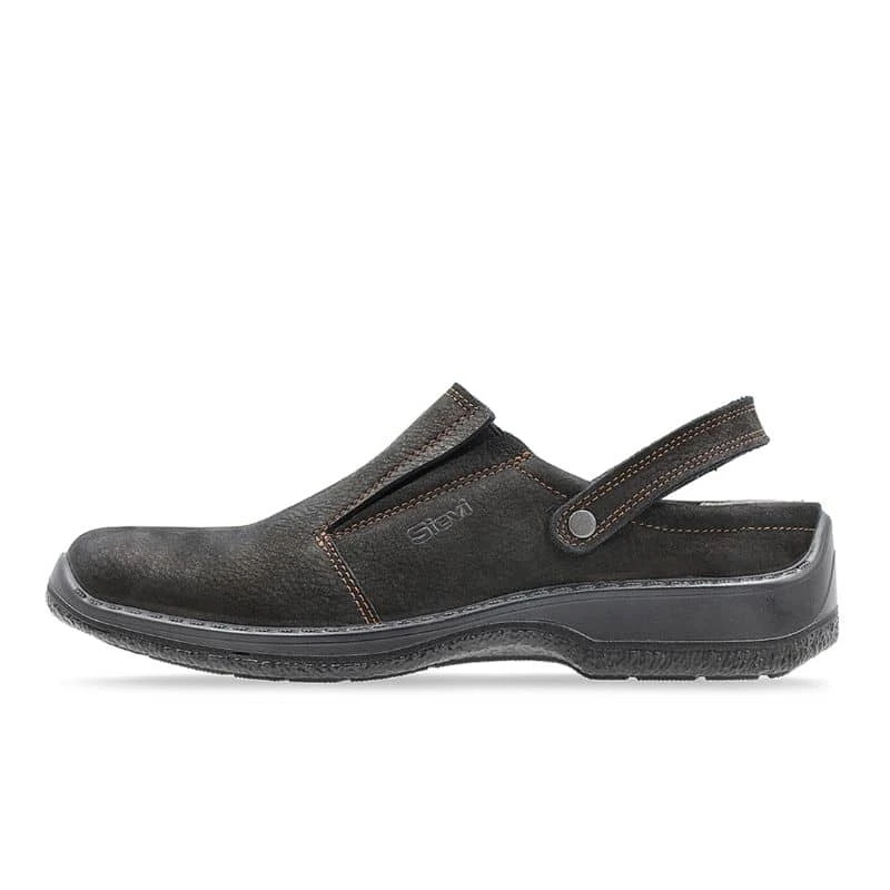 Helposti puettavat pistokkaat kantaremmillä. Kantaremmin voi vaivattomasti kääntää halutessaan jalkapöydän päälle. Ulkosyrjällä ja kantaremmissä venykkeet. Päällinen nupukkia, joka on käsitelty vettä- ja likaa hylkiväksi. Hengittävä tekstiilivuori. Joustava Flexstep® -pohja vaimentaa selkään sekä jalkoihin kohdistuvia iskuja.