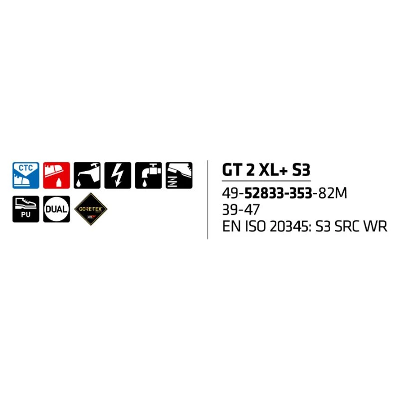 Sievi GT 2 XL+ S3 – varrelliset turvakengät. Turvakenkien tyylikäs ja ergonominen muotoilu lisäävät ammattijalkineiden käyttömukavuutta. Vedenkestävät Gore-Tex® nilkkurit soveltuvat vaihteleviin kosteisiin olosuhteisiin ja pitävät jalat kuvina. Kenkien turvaluokitus on S3 ja täyttävät turvajalkineiden standardien mukaiset vaatimukset. Turvakenkä on varustettu komposiittisella varvassuojalla ja teräsnaulaanastumissuojalla.