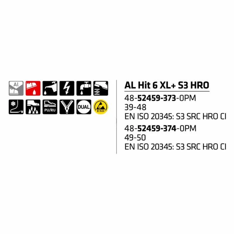 - CE merkitty, EN ISO 20345: S3 SRC M HRO