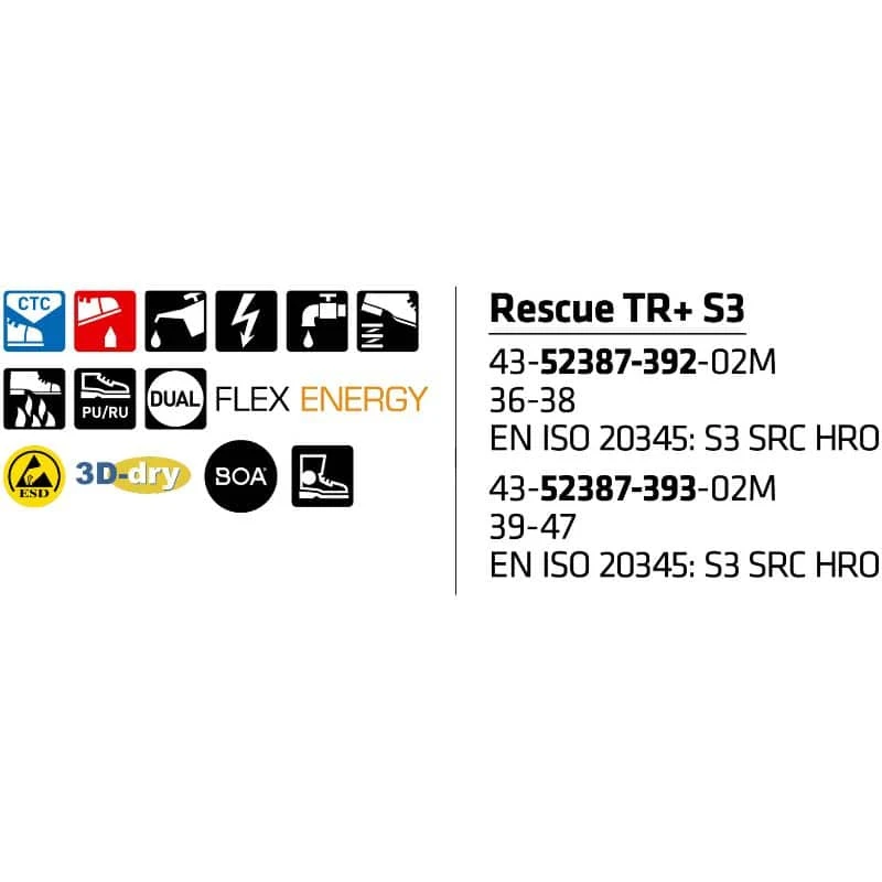 Sporttiset Sievi Rescue TR+ S3 turvakengät BOA®-kiristysmekanismilla on varustettu kevyellä vuorella ja monilla ylivertaisilla ominaisuuksilla!