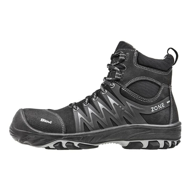 Sievin Zone-tuoteperheen uudistettu metalliton turvanilkkuri, jossa on tyylikkään ulkonäön lisäksi kaikki tarvittavat ominaisuudet, joita turvakengiltä tarvitaan! Komposiittitekstiili naulaanastumissuoja ja komposiittinen varvassuoja parantavat työturvallisuutta ja nilkalle tukea tarjoaa memory foam -nilkkasuoja. Memory foamista valmistettu nilkkasuoja mukautuu yksilöllisesti käyttäjänsä jalkoihin ja parantaa sekä turvallisuutta että kenkien käyttömukavuutta. Kovaan käyttöön soveltuvien turvanilkkurien pintamateriaalina on käytetty vettä hylkivää ja kestävää nahkaa sekä mikrokuitua. 3D-dry-vuorimateriaali puolestaan antaa jalkojen hengittää tehokkaasti ja pitää ne kuivana läpi pitkien työpäivien. Sievin kehittämä 3D-dry-vuori siirtää kosteutta tehokkaasti jalan pinnalta pois vuorimateriaalin ja päällisrakenteen kautta pois kengästä. FlexStep®-pohjamateriaali takaa sekä pohjan pidon että kenkien mukavuuden – joustopohjan rakenne ehkäisee tehokkaasti jalkoihin ja selkärankaan kohdistuvaa rasitusta ja vaimentaa iskuja.